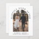 Elegant and budget-friendly elopement or smaller wedding announcement and reception invitation. The front features your wedding day photo in an arched frame and "Happily Ever After" in elegant typography. Under your photo, add your first names, wedding date and location. On the reverse you can personalise your message in more detail and add party or reception details and your names in a signature-like script.