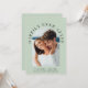 Modern light sage green wedding invitation featuring your photo in an arched frame, "Happily Ever After" in elegant typography and your first names, wedding date and location. On the reverse side, personalise your invitation in simple typography.