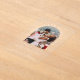 Elegant elopement or private wedding announcement and reception clear acrylic invitation featuring your photo in an arch frame and "Happily Ever After Party" in classic white serif typography. Under your photo, personalise your announcement and party or reception details and add your names in a signature-like white script.