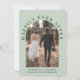 Stylish sage green elopement or private wedding announcement and reception invitation. The front features your wedding day photo in an arched frame and "Happily Ever After" in elegant typography. Add your first names, wedding date and location. On the reverse side, personalise your wedding announcement and reception details and add your names in a signature-like script.