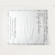 The design is beautifully framed by a crisp double-lined square border and a delicate black and white hand-drawn botanical floral pattern. Below the central message, you can easily personalise the tapestry with the names of the couple, your wedding date, and the venue location to create a one-of-a-kind focal point for your big day. Its clean monochrome aesthetic makes it a versatile choice for modern, garden, or industrial-chic wedding themes.