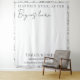 Transform your wedding ceremony or reception space with this elegant and romantic custom tapestry. This large-scale backdrop features the timeless sentiment "HAPPILY EVER AFTER Begins here" in a sophisticated combination of classic serif and flowing, modern script typography.
