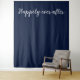 Customise this simple and modern wedding wall backdrop featuring elegant  "happily ever after" white  script typography on elegant and sophisticated dark blue.  Perfect for your wedding photo booth, dance floor backdrop and welcome to your wedding photos.