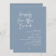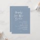 Mark the beginning of your forever with elegance using our contemporary aesthetic dusty blue theme post wedding elopement the morning after celebration invitation card, "Happily Ever After Brunch". Perfect for couples extending their joyous occasion, this invitation exudes sophistication with a hint of playfulness, setting the stage for a memorable event. Adorned with a timeless modern script design theme, it adds a touch of refined charm to your festivities. Crafted by TeeshaDerrick, this invitation promises to beautifully capture your love story.