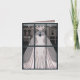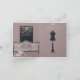 Perfect for any bride with girlish charm and vintage style. A beautiful, barely pink, mermaid wedding gown in a chic vintage store window, the interior of the card pictures the store interior, with the gown and veil having been removed from the dress form and wrapped in large pink boxes with pink bows. Great for the bride, engagement congratulations or wedding related events.