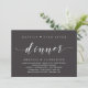 Mark the beginning of your forever with elegance using our contemporary charcoal grey theme wedding elopement celebration invitation card, "Happily Ever After Dinner". Perfect for couples extending their joyous occasion, this invitation exudes sophistication with a hint of playfulness, setting the stage for a memorable event. Adorned with a timeless modern script design theme, it adds a touch of refined charm to your festivities. Crafted by TeeshaDerrick, this invitation promises to beautifully capture your love story.