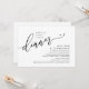 Mark the beginning of your forever with elegance using our contemporary black and white theme wedding elopement celebration invitation card, "Happily Ever After Dinner". Perfect for couples extending their joyous occasion, this invitation exudes sophistication with a hint of playfulness, setting the stage for a memorable event. Adorned with a timeless modern script design theme, it adds a touch of refined charm to your festivities. Crafted by TeeshaDerrick, this invitation promises to beautifully capture your love story.