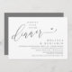 Mark the beginning of your forever with elegance using our contemporary-themed wedding elopement celebration invitation card, "Happily Ever After Dinner". Perfect for couples extending their joyous occasion, this invitation exudes sophistication with a hint of playfulness, setting the stage for a memorable event. Adorned with a timeless dark grey theme, it adds a touch of refined charm to your festivities. Crafted by TeeshaDerrick, this invitation promises to beautifully capture your love story.