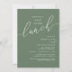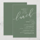 Mark the beginning of your forever with elegance using our romantic contemporary sage green theme, wedding elopement celebration invitation card, "Happily Ever After Lunch". Perfect for couples extending their joyous occasion, this invitation exudes sophistication with a hint of playfulness, setting the stage for a memorable event. Adorned with a timeless modern script design theme, it adds a touch of refined charm to your festivities. Crafted by TeeshaDerrick, this invitation promises to beautifully capture your love story.
