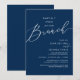 Mark the beginning of your forever with elegance using our romantic contemporary navy blue theme, wedding elopement celebration invitation card, "Happily Ever After Brunch". Perfect for couples extending their joyous occasion, this invitation exudes sophistication with a hint of playfulness, setting the stage for a memorable event. Adorned with a timeless modern script design theme, it adds a touch of refined charm to your festivities. Crafted by TeeshaDerrick, this invitation promises to beautifully capture your love story.