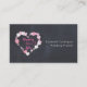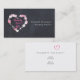 Wedding planner business cards with a romantic illustration of a bunch of little pink glittering hearts forming a heart-shaped frame. Inside it says "Happily Ever After" in a trendy handwritten style font. Set on a black chalkboard background.