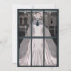Perfect for any bride with girlish charm and vintage style. A beautiful, barely pink, mermaid wedding gown in a chic vintage store window, the interior of the card pictures the store interior, with the gown and veil having been removed from the dress form and wrapped in large pink boxes with pink bows. Great for the bride, engagement congratulations or wedding related events.