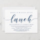 Modern Script classy navy blue theme, wedding elopement invitation card (Happily Ever After Lunch). It is perfect for your wedding elopement casual lakeside celebration.