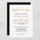 Invite your guests to celebrate your extra special day with this modern gold, black and white wedding invitation. Add your own special touch to this simply elegant design which features the words "happily ever after" set in flowing gold script typography including curved text and long tail glyphs along with contrasting formal black text. Feel free to contact me if you need help or a custom order. A coordinating black background is on the back.