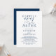 Elegantly announce your happily ever after with our modern navy blue theme, modern classy and elegant wedding reception celebration invitation card, "Happily Ever After", hors d'oeuvres, drinks, dessert, and dancing after the wedding ceremony. Tailored for couples continuing their love story, this invitation strikes a perfect balance of sophistication and charm, setting the scene for an unforgettable event. Featuring a modern contemporary script design, it adds a touch of timeless grace to your special day. Designed by the talented TeeshaDerrick, this invitation is a stylish expression of your enduring love.