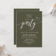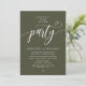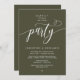 Mark the beginning of your forever with elegance using our contemporary olive green themed wedding elopement celebration invitation card, "Happily Ever After Party". Perfect for couples extending their joyous occasion, this invitation exudes sophistication with a hint of playfulness, setting the stage for a memorable event. Adorned with a timeless modern script design theme, it adds a touch of refined charm to your festivities. Crafted by TeeshaDerrick, this invitation promises to beautifully capture your love story.