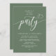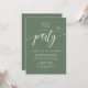 Mark the beginning of your forever with elegance using our contemporary forest sage green themed wedding elopement celebration invitation card, "Happily Ever After Party". Perfect for couples extending their joyous occasion, this invitation exudes sophistication with a hint of playfulness, setting the stage for a memorable event. Adorned with a timeless modern script design theme, it adds a touch of refined charm to your festivities. Crafted by TeeshaDerrick, this invitation promises to beautifully capture your love story.