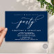 Announce and share your happily ever after in style with our modern classy navy blue theme design (Happily ever after party) wedding elopement celebration invitation card. It is ideal for couples who have decided to celebrate their best day. With its sophisticated yet playful design, this invitation is sure to set the tone for an unforgettable event. The invitation card features a modern and minimalist script design theme, adding a touch of timeless elegance to your celebration. Designed by TeeshaDerrick