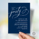 Announce and share your happily ever after in style with our modern classy navy blue theme design (Happily ever after party) wedding elopement celebration invitation card. It is ideal for couples who have decided to celebrate their best day. With its sophisticated yet playful design, this invitation is sure to set the tone for an unforgettable event. The invitation card features a modern and minimalist script design theme, adding a touch of timeless elegance to your celebration. Designed by TeeshaDerrick