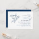 Mark the beginning of your forever with elegance using our contemporary-themed, classy navy blue wedding elopement celebration invitation card, "Happily Ever After Party". Perfect for couples extending their joyous occasion, this invitation exudes sophistication with a hint of playfulness, setting the stage for a memorable event. Adorned with a timeless modern script design theme, it adds a touch of refined charm to your festivities. Crafted by TeeshaDerrick, this invitation promises to beautifully capture your love story.