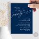 Announce your happily ever after in style with our modern minimalist romantic script design wedding elopement party invitation card. Our Happily Ever After Dinner Party invitation card is ideal for couples who have decided to elope and want to host a party to celebrate their union. With its sophisticated yet playful design, this invitation is sure to set the tone for an unforgettable event. The invitation card features a minimalist design with a Navy Blue scheme, adding a touch of timeless elegance to your celebration.