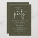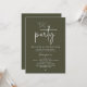 Announce your happily ever after in style with our modern minimalist casual script design wedding reception elopement dinner celebration invitation card in olive green theme. Our "Happily Ever After Party" Invitation card is ideal for couples who have decided to elope and want to host a party to celebrate their union. With its sophisticated yet playful design, this invitation is sure to set the tone for an unforgettable event. The invitation card features a minimalist design with a black and white scheme, adding a touch of timeless elegance to your celebration.