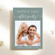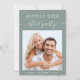 Chic sage green post-wedding reception invitation featuring your photo, "Happily Ever After Party" in a blend of simple white lettering and a stylish white script and your first names and wedding or reception date joined together by a heart. Personalise your reception details and add your names in a signature-like script on the back.