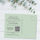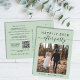 Modern sage green elopement or private wedding announcement and reception invitation postcard. The front features your photo and "Happily Ever After Party" in a mix of simple typography and a stylish script with swashes. Under your photo you can add your first names and wedding date. On the reverse you can personalise your message and invitation in more detail, create a QR code linked to your wedding website for your guests to scan for more information and to RSVP online, and add your names in a signature-like script.