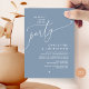 Announce and share your happily ever after in style with our modern summer dusty blue theme romantic design (Happily ever after party) wedding elopement celebration invitation card. It is ideal for couples who have decided to celebrate their best day. With its sophisticated yet playful design, this invitation is sure to set the tone for an unforgettable event. The invitation card features a modern and minimalist script design theme, adding a touch of timeless elegance to your celebration. Designed by TeeshaDerrick