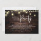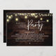 Woth joyius hearts, announce and share your happily ever after in style with our modern rustic string lights, cottage dark wood theme design "Happily ever after party" wedding elopement or reception dinner and dancing celebration invitation card. It is ideal for couples who have decided to celebrate their best day. With its sophisticated yet playful design, this invitation is sure to set the tone for an unforgettable event. The invitation card features a modern and minimalist script design theme, adding a touch of timeless elegance to your celebration. Designed by TeeshaDerrick
