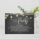 Woth joyius hearts, announce and share your happily ever after in style with our modern rustic string lights, cottage dark grey chalkboard theme design "Happily ever after party" wedding elopement or reception dinner and dancing celebration invitation card. It is ideal for couples who have decided to celebrate their best day. With its sophisticated yet playful design, this invitation is sure to set the tone for an unforgettable event. The invitation card features a modern and minimalist script design theme, adding a touch of timeless elegance to your celebration. Designed by TeeshaDerrick