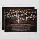 Announce your happily ever after in style (Happily ever after party) with our modern rustic dark brown wood style graphic background, cottage string lights design wedding elopement celebration invitation card. Our Happily Ever After Party Celebration Invitation card is ideal for couples who have decided to elope and want to host a party to celebrate their union. With its sophisticated yet playful design, this invitation is sure to set the tone for an unforgettable event. The invitation card features a minimalist rustic elegant design scheme, adding a touch of timeless elegance to your celebration. Designed by TeeshaDerrick