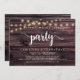 Beautiful Happily Ever After party, Wedding Elopement Announcement / Invitation card, in Modern Rustic Brown Dark wood, String Lights design. This is perfect for your wedding reception and post-wedding celebration party. Add your details in matching font / lettering.