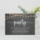 Mark the beginning of your forever with elegance using our rustic cottage string lights chalkboard themed wedding elopement celebration invitation card, "Happily Ever After Party". Perfect for couples extending their joyous occasion, this invitation exudes sophistication with a hint of playfulness, setting the stage for a memorable event. Adorned with a timeless modern script design theme, it adds a touch of refined charm to your festivities. Crafted by TeeshaDerrick, this invitation promises to beautifully capture your love story.