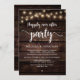 Beautiful Happily Ever After party, Wedding Elopement Announcement / Invitation card, in Rustic farm brown wood, String Lights design. This is perfect for your wedding reception and post-wedding celebration party.