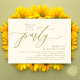 Mark the beginning of your forever with elegance using our contemporary classy aesthetic yellow gold theme wedding elopement celebration invitation card, "Happily Ever After Party". Perfect for couples extending their joyous occasion, this invitation exudes sophistication with a hint of playfulness, setting the stage for a memorable event. Adorned with a timeless modern script design theme, it adds a touch of refined charm to your festivities. Crafted by TeeshaDerrick, this invitation promises to beautifully capture your love story.