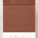 Elegant terracotta casual wedding reception all-in-one invitation that features "Happily Ever After Party" showcased in simple lettering and a chic script with swashes, your marriage announcement and reception details, and a white tear-away RSVP postcard, all rendered in your choice of genuine gold, silver or rose gold foil.