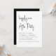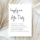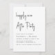 Minimal modern black and white wedding reception invitation featuring "Happily Ever After Party" in a chic script, your details in simple lettering, and your first names in classic serif typography.