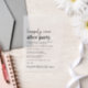 Celebrate your love in style with our chic minimalistic vellum wedding reception invitations, perfect for announcing your elopement or private wedding to friends and family and inviting them to celebrate with you. Featuring the phrase "happily ever after party" in a blend of a contemporary script and bold trendy typography, these invitations are beautifully personalised with your marriage announcement, wedding reception invitation and your names in an elegant, signature-like script. Pair it with your favourite photo or one of our coordinating solid colour or photo card stock backgrounds for a sophisticated and timeless combination (see our Backgrounds For Vellum Overlay Collections or message us for the links).