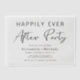 Announce your elopement or private wedding to friends and family and invite them to celebrate with you with our chic vellum paper wedding reception invitation. Featuring the phrase "Happily Ever After Party" in a blend of modern script and clean typography, these invitations are beautifully personalised with your marriage announcement, wedding reception invitation and your names in an elegant, signature-like script. Pair it with your favourite photo underneath for a sophisticated and timeless touch that sets the tone for an unforgettable celebration.