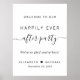 Chic wedding reception welcome poster sign featuring "Welcome To Our Happily Ever After Party" in a mix of simple modern typography and an elegant script with swashes, your first names joined by a heart and your reception date. Perfect for receptions after an elopement or small private wedding.