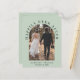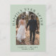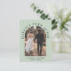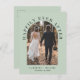 Modern sage green elopement or private wedding announcement and reception invitation postcard. The front features your wedding day photo in an arch frame and "Happily Ever After" in elegant typography. Under your photo, add your first names and wedding date. On the reverse, personalise your message and reception details and add your names in a signature-like script.