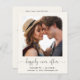 Simple and chic light cream budget-friendly elopement or private wedding announcement and post-wedding reception invitation featuring your photograph, "happily ever after" written in a stylish script with swashes and your first names, wedding date and location in modern typography. On the reverse, personalise your announcement and invitation in more detail, input your wedding website address to create a QR code for your guests to scan for more information and to RSVP online, and add your names in a signature-like script.