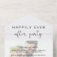 Elegant elopement or small wedding announcement and reception all in one invitation to announce your marriage to family and friends and to invite them to a post-wedding celebration party. "Happily Ever After Party" is in written in a mix of simple typography and a chic script with swashes. Your photo is overlayed with your customised elopement/wedding announcement and reception invitation. input your wedding website URL address to create a QR code for your guests to scan for all the details and to RSVP online. A tear away RSVP postcard provides a convenient and eco-friendly and envelope-free response from your guests.