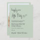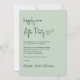 Stylish sage green elopement or private wedding announcement and wedding reception invitation featuring "Happily Ever After Party" in a chic modern script and your names in a signature-like script. On the back, upload your photo and input your wedding website address to create a QR code that your guests can scan to RSVP online and obtain additional details.