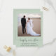 Sage green elopement or small wedding announcement and reception invitation postcard that features your photo, "happily ever after" written in an elegant script with swashes and your names, wedding date and location. On the back, personalise your wedding announcement, add a reception or party invitation and sign your married names in a signature-like script.
