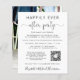 Budget-friendly elopement or private wedding announcement and wedding reception or celebration party invitation. The front features "Happily Ever After Party" in simple typography and an elegant script with swashes, your marriage announcement and reception invitation, a QR code linked to your wedding website for your guests to scan for more information and to RSVP online, and your names in a signature-like script. Easily input your wedding website URL address to automatically create the QR code and add your initials on top (the initials template is sized appropriately to keep the QR code scannable; you should verify by scanning your personalisation with your phone before ordering). The reverse side features your favourite wedding photo, your first names and wedding date.