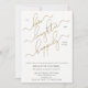 This beautiful, modern Black White and Gold Script Engagement Party Invitation features a faux gold leaf calligraphy script reading 'To Love, Laughter, and Happily Ever After' as the main design element. The design is beautifully complemented by the modern all cap sans serif font in black, on the crisp, white background, detailing the engagement party time, date and location. The back of the invite features a black and white watercolor design on the reverse, to complete the chic, sophisticated look. Copyright Anastasia Designs, all rights reserved.