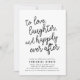 Our modern and casual wedding rehearsal dinner invitations in chic black and white feature "to love, laughter happily ever after" in black script typography with your rehearsal dinner details beneath. Cards reverse to a festive black and white confetti pattern.