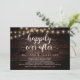 Beautiful Happily Ever After party celebration, Wedding Elopement Announcement / Invitation card, in Rustic farm Wood, String Lights design. This is perfect for your wedding reception and post-wedding celebration party. Add your details in matching font / lettering.